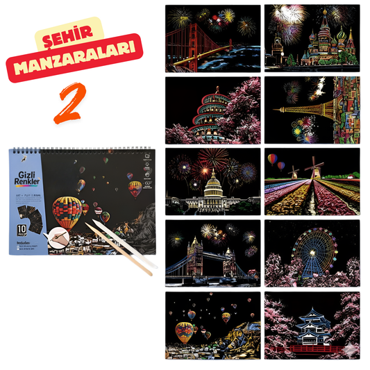 Çocuk ve Yetişkinler İçin Kazımalı Renkli Sanat Kartları